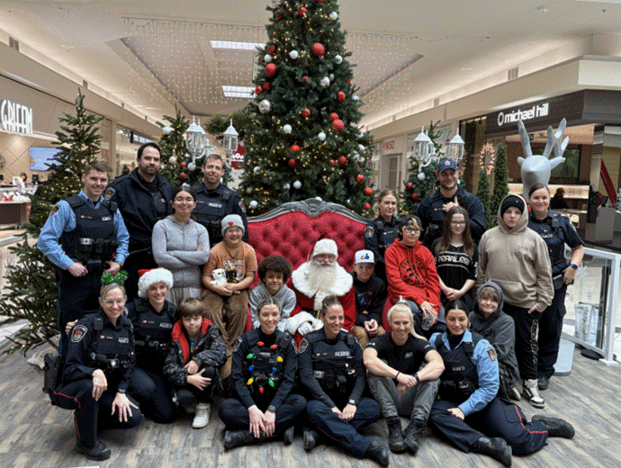 Following the morning of shopping, the children received a stocking full of treats for themselves, photos with Santa, and enjoyed a lunch with the officers, which was provided by Kelsey’s Brantford.