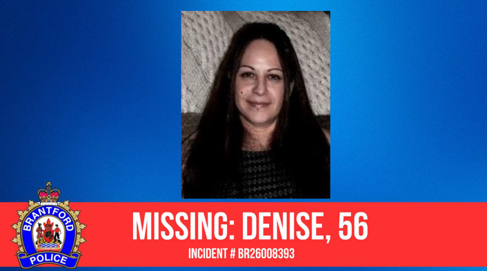 The Brantford Police Service are seeking the public’s assistance to locate missing 56-year-old Denise.